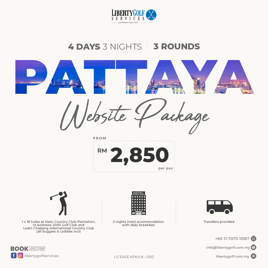 Touch down at Bangkok’s Suvarnabhumi Airport where your private SUV awaits. With luggage handled, you head straight to Siam Country Club Plantation, one of Thailand’s most celebrated courses. Rolling fairways, dramatic elevation changes, and pristine greens set the tone for your golfing adventure. After your round, transfer to your hotel in Pattaya for check-in and a relaxing evening.